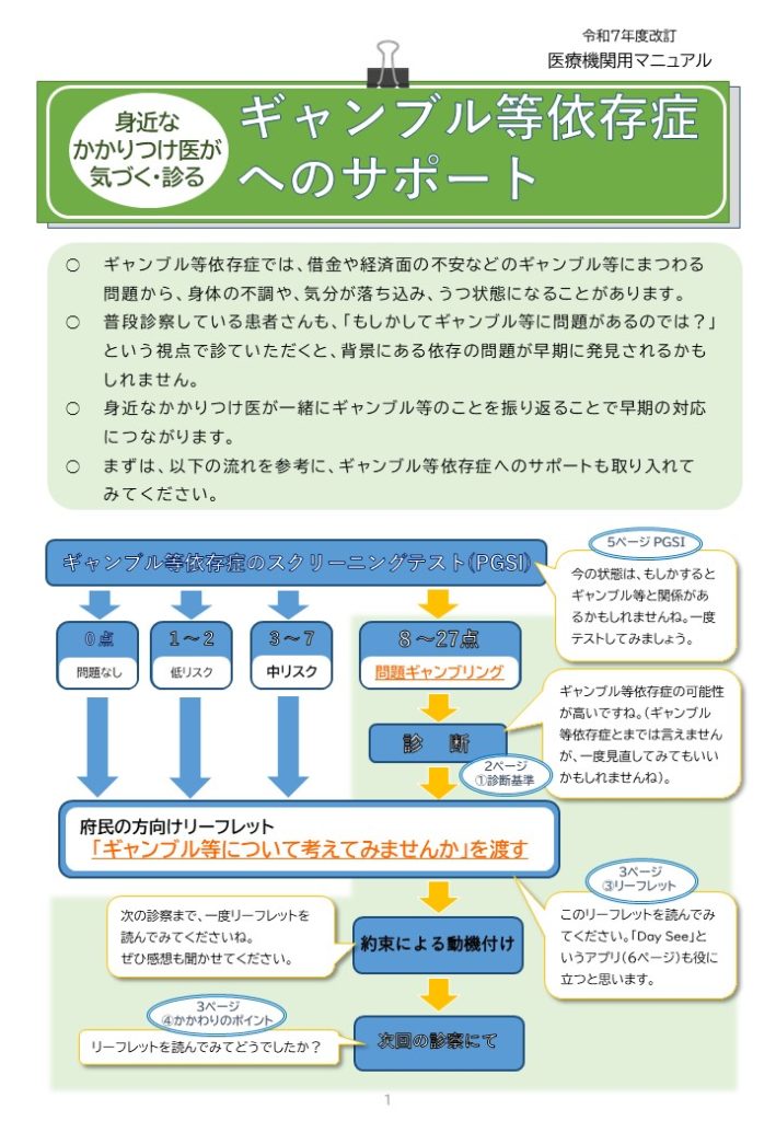 医療機関用マニュアル「ギャンブル等依存症へのサポート」