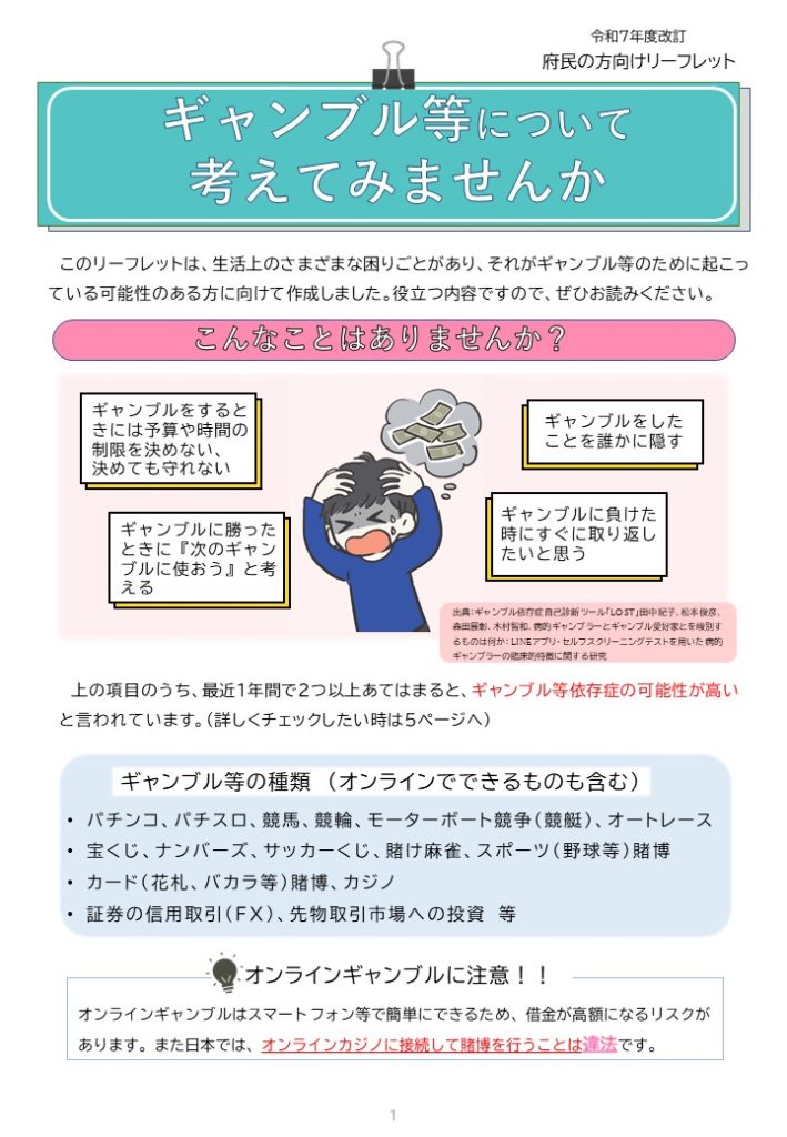 府民向けリーフレット「ギャンブル等について考えてみませんか」
